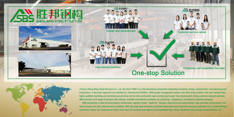 佛山市勝邦鋼結構有限公司(簡稱“勝邦鋼構”www.wrtxcq.cn)是一家集合營銷、設計、研發(fā)、制造、施工為一體,專業(yè)承建鋼結構建筑的發(fā)展型企業(yè)。并通過國際ISO9001:2008質量管理體系認證和SGS工廠體系認證。近年的飛快發(fā)展,培養(yǎng)了一大批高素質營銷、技術人才和現(xiàn)場施工隊伍,勝邦以客戶需求為導向,為客戶提供合理的、科學的、有效的解決方案,以務實進取、不斷創(chuàng)新、團結一致的精神為客戶提供全方位的服務。