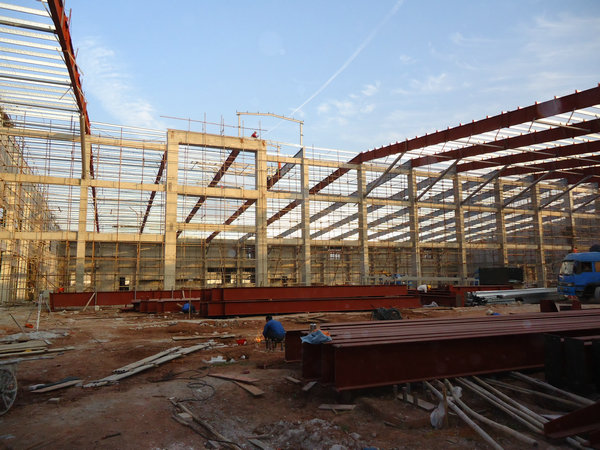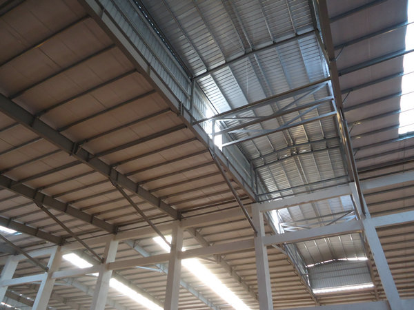 大瀝精工廠房位于佛山市南海區獅山大瀝。占地面積為15200平方米,主鋼架結構采用混凝土柱和H型焊接鋼梁相結合方式。墻體用磚墻,屋面用單彩板。屋面布置通風氣樓以此為空氣循環使用。以下是部分廠房安裝圖片: